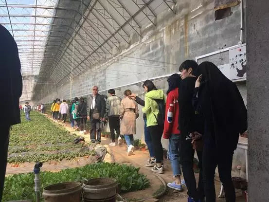 同学们排着队,有条不紊的走进草莓大棚中,开始采摘咯!