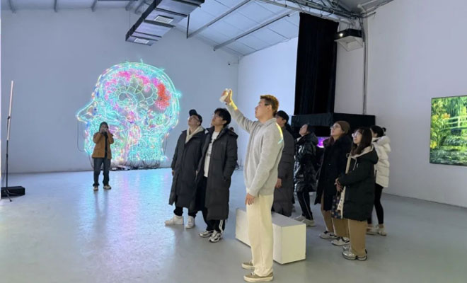 展厅向学生们展示了人工智能与艺术的深度融合,围绕“科技赋能艺术”的核心理念,使得学生们切实感受人工智能的发展。老师们结合企业技术特色与学生们展开交流,帮助学生们探寻未来的职业发展规划。