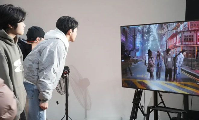随后,学员们参观了xR虚拟制片实验室。这里配备了先进的xR虚拟拍摄技术,可以模拟出各种真实的场景和环境。在工程师的指导下,学员们了解了xR虚拟拍摄的原理和构架,从控制软硬件、摄像机等方面入手,体验了虚拟制片的全流程。这种虚拟拍摄技术不仅为艺术创作提供了更多的可能性,也为影视行业的发展注入了新的活力。