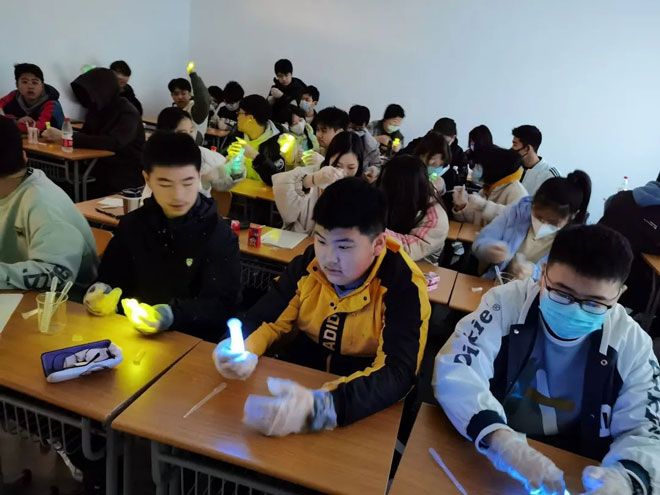 科学讲座系列,不仅仅让同学们了解科学的技术知识,更重要的是近距离了解科学的实际应用。为此特意邀请了中国科学院的陈教授,为同学们讲解“红外线的应用”。于此同时,Hoffman老师还带领同学们通过实验,完成荧光棒的制作。