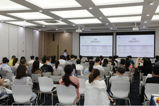 开幕致辞后,东北财经大学跨境教育中心副主任韩亮为现场学生及家长进行了2+2留学世界名校项目的全面解读,进一步解读了东北财经大学跨境教育中心2+2项目的特色和招生政策。