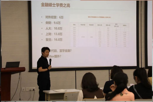 接着东北财经大学金融学院副教授翟光宇为在场的家长学子带来财经大讲堂,以专业的角度分析了财经类专业的学习内容、未来前景和规划,干货满满的知识点让在座的大家收获颇丰。