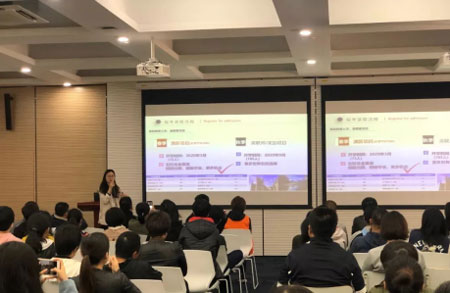 10月27日,大连专场的招生政策说明会如期举行,跨境教育中心主任助理韩亮老师和解泱老师,为家长们带来了最新招生政策解读。会后,参会的很多家长都进行了一对一咨询,更有关注项目已久的家长现场完成报名,向2020年春季班的15个名额发起冲击!