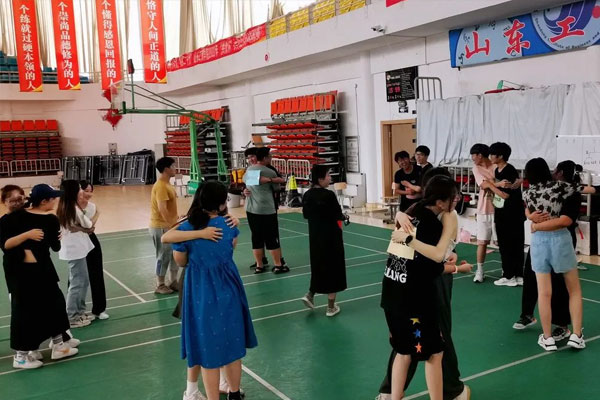 游戏-喊数抱团,裁判随机喊出意大利语数字,同学们迅速反应抱团。集中同学们的注意力,同时还发展了同学们的分析、判断和反应能力,未成团的同学淘汰,受“罚”(可才艺展示可走猫步)。