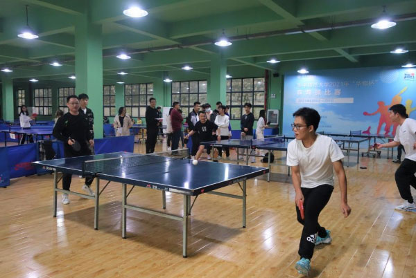 比赛过程中,师生选手们本着“友谊第一,比赛第二”的原则,激烈地进行着一场场比拼。随着乒乓球在台上来回飞舞,场上队员不断变换侧跑步、并步、碎滑步、跨步、滑步等步式,采用接发球抢攻、下旋球、吊边角、提拉、大力扣杀、推挡等多种战术,或精准进攻,或巧妙防守,精彩场面层出不穷,赛场上加油声、呐喊声、欢笑声不绝于耳!