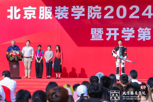 杰出校友、中国服装协会副会长,“例外”、“方所”品牌创始人毛继鸿先生饱含深情地讲述了求学奋斗历程,回顾了母校对其职业生涯的深远影响,为新生点亮心灯。他寄语新生们坚持创新与实践,将理论知识与实际操作结合;关注可持续发展,融合环保理念;培养国际视野,理解全球时尚趋势;保持对行业的热情与执着,勇敢迎接挑战;拥抱行业变化,推动时尚潮流。他鼓励同学们在北京服装学院这片沃土上勇敢追梦、努力奋斗,创造精彩与成就。