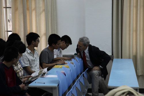 5月9日下午13:00,西班牙那瓦立公立大学哈维尔.卡沙里校长、路易斯.艾尔南思德先生及竺北兰女士一行对我院留学语言培训班学员进行了介绍,并向学员介绍了西班牙的概况和那瓦罗公立大学的就读环境及对国际学生的支持政策,现场解答了部分学生对于留学的疑问。