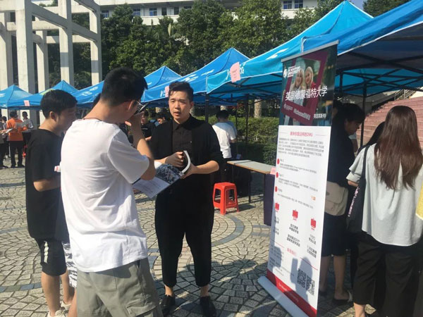 来自英国、美国、澳大利亚、加拿大、新加坡等国家的20多所高校的校方代表以及教育部留学服务中心留学工作组莅临现场,为我院学生出国留学提供专业的指导和更加多样化的选择,对各位同学比较关心的留学问题,科系架构、本科和研究生课程设置、申请条件、导师情况等问题,进行了细致地分析和认真地解答,并获得了广大师生的一致好评。