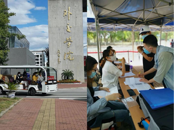 2020年,注定是不寻常的一年,突如其来的疫情为世界的发展按下了暂缓键,也给教育事业带来了不小的冲击。因此,经过慎重的考虑,学校采取“分批、分时入学”的开学方式,并且,在进入校园时,由新生独自入校,不允许家长陪同。新生入校后由专人专车送至宿舍楼下,做好登记后,宿管阿姨会亲手将宿舍钥匙交到新生手中,和蔼可亲的宿管阿姨也让新生倍感亲切,之后,热心的阿姨会帮助学生将行李搬至宿舍内,考虑到有些新生缺乏住宿经验,阿姨们还很贴心地帮助学生收拾行李,整理床铺。可见在“关爱学生健康,关注疫情防控”方面,外交学院可以说得上是下足了功夫,这也让原本恐惧担忧的学生一下子放心不少,纷纷感到“外院是一个和谐的大家庭”!