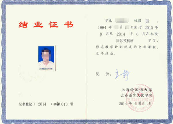 (预科班学生毕业时将获得由上海外国语大学立泰语言文化学院颁发的结业证书)