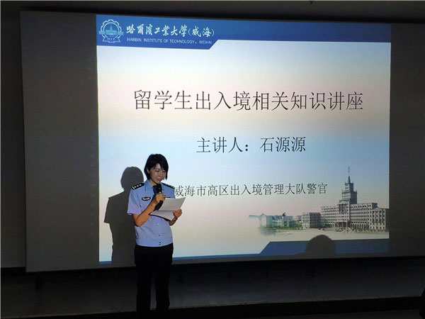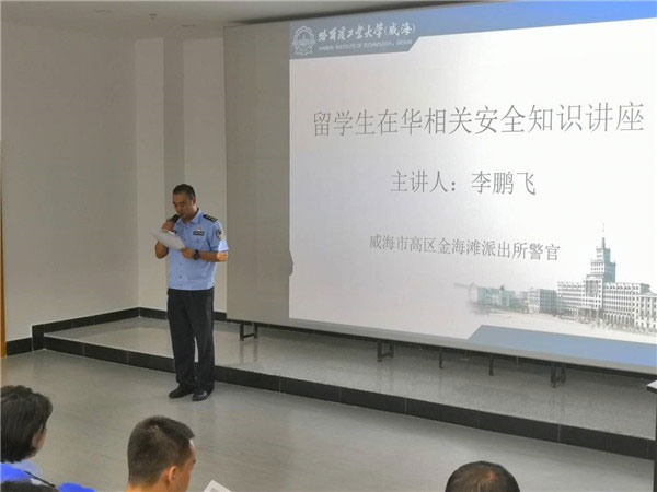 发布时间:06-19 来源:哈尔滨工业大学(威海)德国留学9月6日下午,由校区留学生中心、后勤保卫处、威海市高区出入境管理大队、金海滩边防派出所4家单位共同主办的2019年秋季哈工大(威海)国际学生安全教育大会在图书馆五楼影视厅成功举办。出入境管理大队大队长王宏佳、校团委书记胡韬、国际合作处处长助理路怀宇、后勤保卫处学生公寓管理办公室副主任尹小鹏出席活动。金海滩派出所民警、图书馆多媒体负责教师、计算机学院辅导员、劲松书院学生干部、学生社团负责人,以及留学生中心师生全体60余人在座。