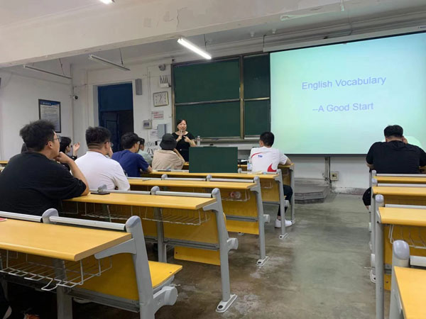曲老师主要从为什么要学好英语词汇以及如何学好英语词汇两个部分来讲解。曲老师指出,词汇是英语学习的最基本元素,是听说读写的基础,英语的各项技能都离不开词汇的积累和运用,因此同学们要从态度上重视英语词汇的学习。随后曲老师从发音/拼写、词义、功能、搭配以及联想五个方面向同学们详细阐述如何学习英语词汇。曲老师用一个简单的单词Computer进行演示,通过五个方向的拓展,将一个词拓展为一个词群,使同学们清晰地了解到应该如何有效地拓展词汇量。最后曲老师鼓励大家要精学多练,词汇量的增加不是一蹴而就,而是要反复练习不断纠正,以课本为中心运用多种方法学习,同时也要增加课外阅读量,创造一个良好的英语学习的氛围。