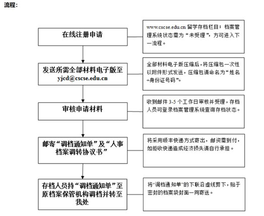 2、 自费出国(境)留学人员只可选择现场或电子邮箱申请办理的其中一种方式,如通过电子邮箱申请,“调档通知单”及“人事档案调转协议书”只能通过邮寄接收。