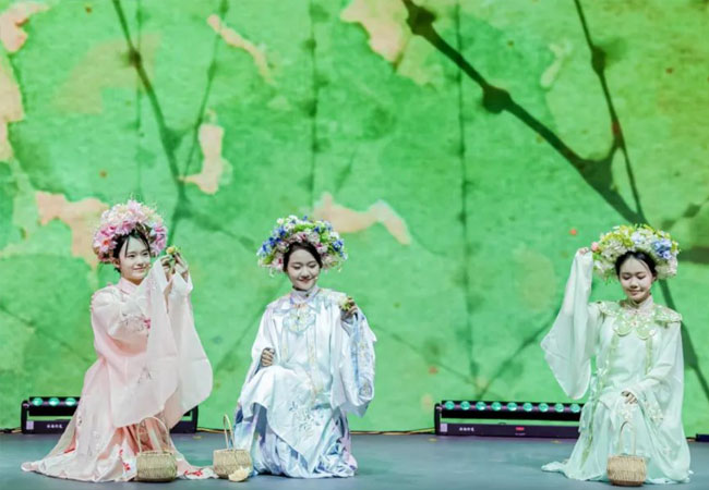 女声三重唱《岭南春早》以婉转悠扬的旋律展现了岭南春日的诗意画卷;曹跃跃、刘亦菲、余沙沙、侯艺菡共同演绎的《有犄角的少女》则将歌舞元素相结合,展现青春灵动之美。