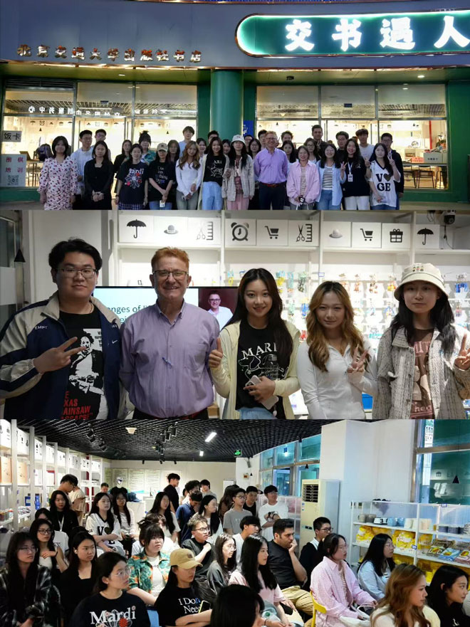 发布时间:05-23 来源:北京交通大学留学教育中心2025年5月15日18:30,由语言与传播学院外语系与继续教育学院留学教育中心联合主办的"国际沟通力共创空间"系列活动之英语角,在主校区下沉广场北京交通大学出版社书店成功举办。本次活动以"在华生活的变化"为主题,特邀新西兰外籍教师Harry担任主讲嘉宾,吸引了近五十名SQA项目师生参与。现场气氛热烈,互动频繁,为校园增添了一抹国际化亮色。