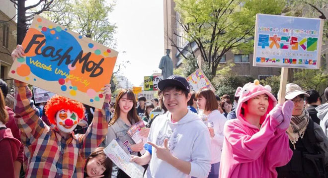 与新生们一同到场的还有新生家长们,在这充满希望的一年里站在新起点迎接崭新的开始。不同的大学举办的入学式各具特色,一直以活力自主的形象展现世人的早稻田大学,入学式的热闹程度你绝对想象不到。