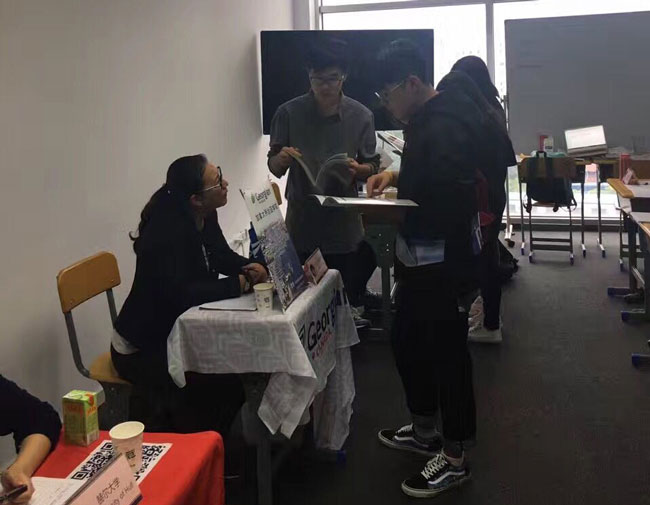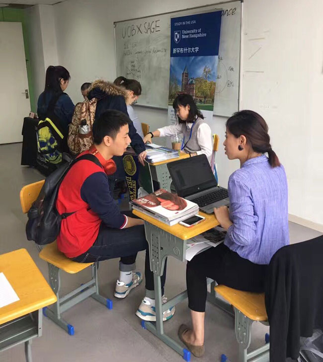 今天在我们上海外国语大学国际教育中心举行了留学展,来了很多国外大学的校方代表,有曼彻斯特大学、东英吉利大学、美国纽约大学,澳洲国立大学等等,让我们的学生在自己的学校里可以近距离的接触很多高校的校代表,通过跟校代表的沟通中,了解学校的申请要求,学费,还有该所学校所在的地理位置和生活环境,也让校代表通过沟通来了解我们的学生,也作为一个面试的预演。