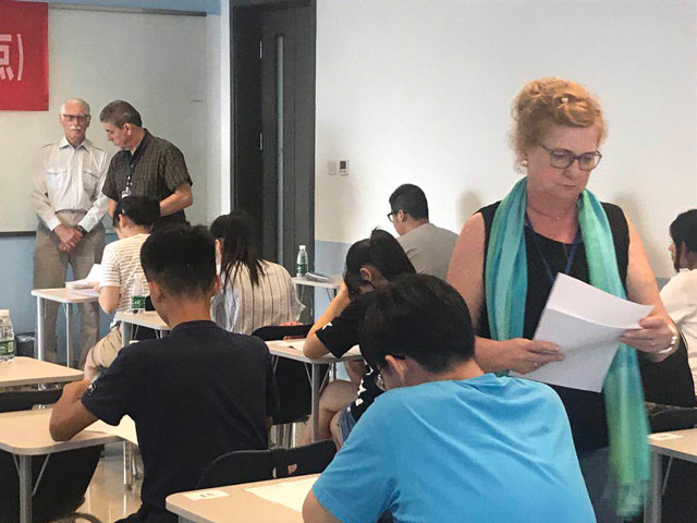 德国考官为考生分发试卷