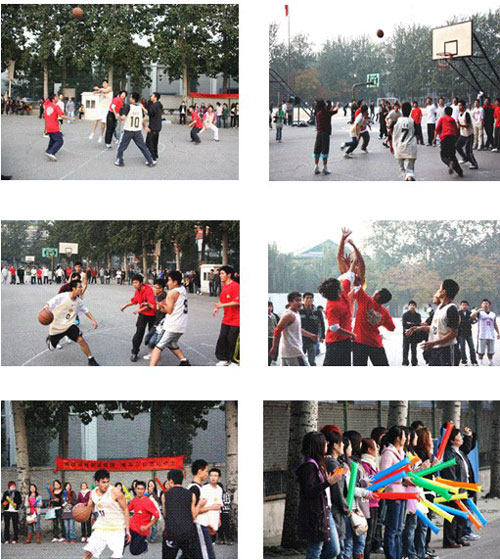 发布时间:01-13 来源:北外出国人员培训部韩国留学11月5日下午4:00,在中心学生会的精心组织下,留学基地一年级和二年级的学生进行了一场篮球友谊赛。对阵双方本着“友谊第一、比赛第二”的态度展开了竞争。双方在场上都敢打敢拼,赛出了水平,赛出了风格。比赛中,双方球员的精彩表现赢得了场外观众的阵阵掌声和欢呼,赛场上比分交替上升,战况十分精彩。通过比赛,同学们放松了身心,展示了球技,增进了了解、加深了友谊。