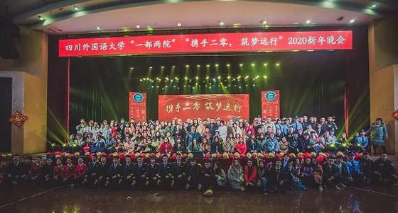 发布时间:01-20 来源:四川外国语大学国际学院2019年12月12日晚七点,四川外国语大学“一部两院”“携手20,筑梦远行”2020新年晚会在东区大礼堂成功举行。莅临本次晚会的嘉宾有四川外国语大学国际教育学院院长曾传芳老师、国际教育学院党总支书记杨晓东老师、国际教育学院副院长任洪涛老师、国际教育学院党总支副书记陈睿老师、重庆警察学院治安系主任陈菊娟老师,还有“一部两院”和重庆警察学院的老师、同学们,校学委会委员们,以及各兄弟院系的学生嘉宾们。在这璀璨星夜,座无虚席的礼堂里,我院师生齐聚一堂,回首过往的一年,展望新的年华,朝着已筑起的梦想,继续前行。