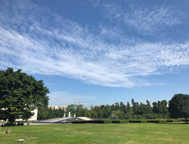 早晨趁着和煦的阳光,同学们就兴冲冲地登上了去往电子科大清水河校区的校车。一下车一片郁郁葱葱的景象就映入眼帘。