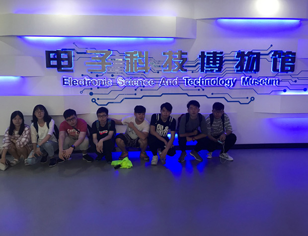 在主楼合影留念后,同学们便跟随着老师一起去观看电子科大的历史馆。历史馆里成列的各种展品让同学们都叹为观止。