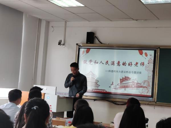 邓淑华教授以新时代对高校教师师德师风的新要求为切入,详细解读教育部关于师德师风建设相关政策文件和要求,并结合习近平总书记系列重要讲话,对加强师德师风修养、明确教师职能、提高防腐意识、认清岗位风险、强化师德监督等方面进行讲解,同时以警示案列告诫大家要守住道德的防线,纪律的底线,努力靠高线,提升自我的知识修养和文化品位,做有道德、有情怀、讲方法的好老师。
