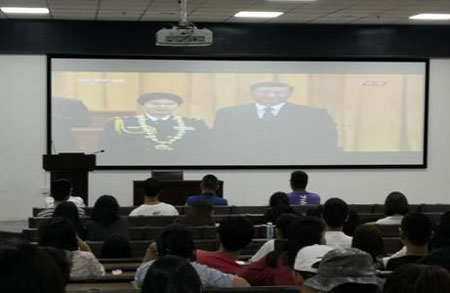 秋风送爽的9月9日下午,由出国留学人员培训部(教务科和学生科组织)在雁塔校区二号教学楼地下阶梯东教室举行“民族精神代代相传”主题讲座。思政方向博士生范鹏飞老师给全体学生讲授。讲座之后,让全体学生将写出心得体会。