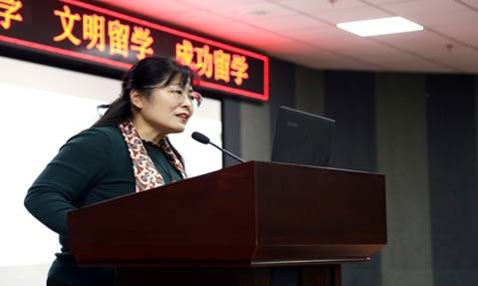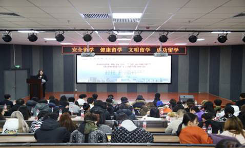 发布时间:02-01 来源:西安外国语大学国际学院由教育部国际合作交流司主办、教育部留学服务中心承办、西安外国语大学出国留学人员培训部协办的“2020年教育部‘平安留学’出国留学行前培训会”,于12月20日在西安外国语大学雁塔校区2号教学楼地下阶梯教室举行。由于受新冠肺炎疫情的影响,这次接受培训人员,主要是我校国际项目学生160人。培训会由出国留学人员培训部学生科科长刘莉主持,副主任杨丽娟致辞。