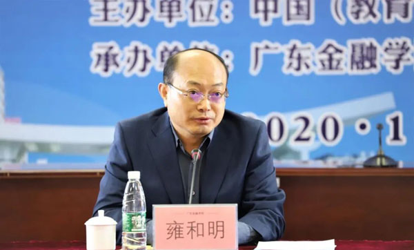 11月11日上午,由中国(教育部)留学服务中心主办,广东金融学院承办的“2020年国际项目交流培训会”在我校顺利召开。中国(教育部)留学服务中心副主任艾宏歌、国际合作处处长明廷玺、广东金融学院校长雍和明,以及来自上海财经大学、厦门大学、华东师范大学、华南理工大学、深圳大学等20多所高校的国际项目负责人参加了会议。