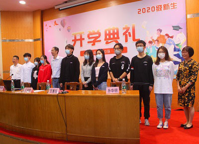 上海嘉定区公安分局高校派出所副所长赵勤梅、上海律宏律师事务所主任律师王夏青、上海大学保卫处消防科副科长朱佳贤、继续教育学院直属党总支书记王海燕、副院长王惠珏、培训部主任孙华明、各项目负责人、班主任老师以及2020级全体新生出席了开学典礼。典礼由ACCA项目2018级学生徐雯依主持。