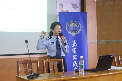 为了进一步增强同学们的法制意识,创建和谐平安校园,本次典礼邀请了上海律宏律师事务所主任律师王夏青律师和嘉定公安分局高校派出所副所长赵勤梅警官为20级新同学分别从人身安全和校园安全的角度进行了专业的讲座。王律师和赵警官的讲解深入浅出,通过一个个发生在我们身边的案例,强化了大家对于人身安全、校园安全、青少年违法犯罪和校园诈骗等认知。