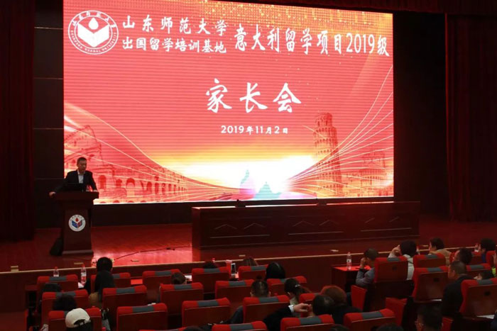 家长会上,曹广军老师对2018级学生入学情况、2019级学生签证材料准备及出发去意大利前的行李准备等事项进行了讲解介绍。曹广军老师向这段时间以来一直积极配合山东师范大学出国留学培训基地意大利留学项目工作的各位家长表示感谢!