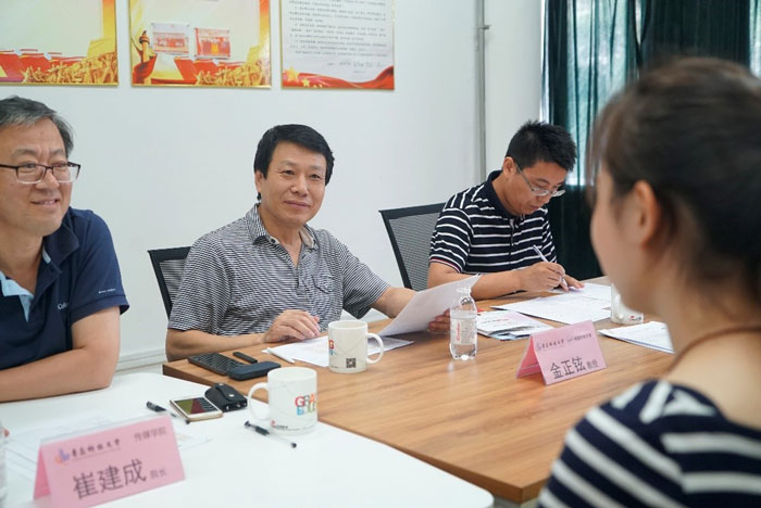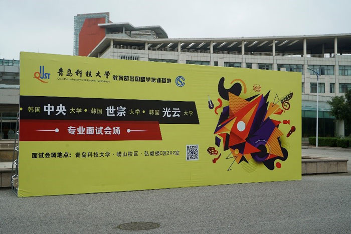 丝丝细雨为酷暑中的青岛带来了些许凉意,可降不下参与面试会学生们的热情。第二次面试会的评委由韩国三校指定面试官金正弦教授、青岛科技大学传媒学院崔建成院长、青岛科技大学艺术学院杨利主任以及青岛科技大学国际处蔺智泉博士组成。主要针对广播电视编导与表演、实用音乐、游戏动漫、影像设计、艺术经营、奢侈品品牌设计、公演艺术、酒店观光经营与外食经营等专业进行面试。