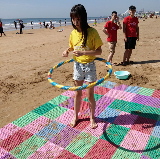 首先是个“美容养颜”的热身小游戏,游戏共三个环节,先是跳绳,每人40下。其次是3分钟呼啦圈。最后是集满半盆沙。你无法想象学生们的热情是多么的高涨。让我们先睹为快吧!