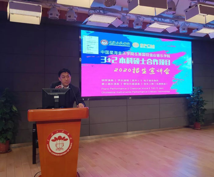 今年下半年我校启动了“星海音乐学院-旧金山音乐学院3+2本硕连读合作项目”。10月,旧金山音乐学院在校教授们来我校举办招生宣讲会及大师班,取得了较好的反响。